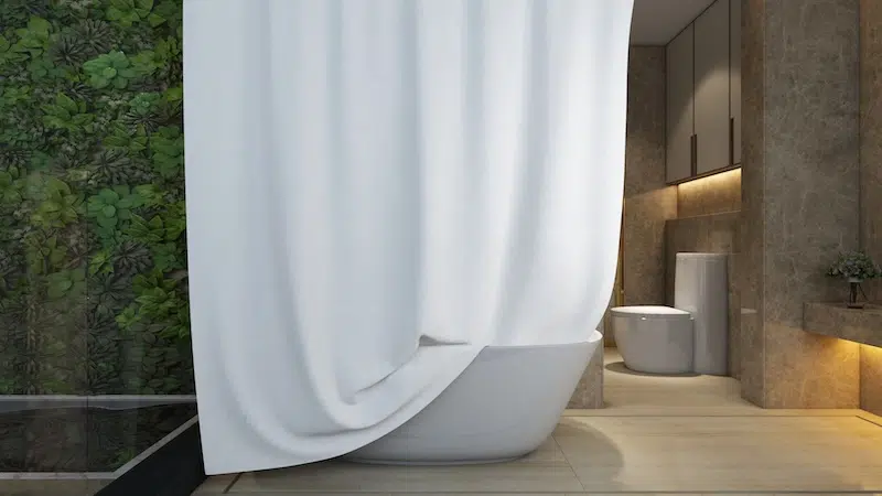 Zusätzlicher Tipp: Ziehen Sie den Vorhang nach jeder Dusche vollständig auf, damit er schneller trocknet. Das verhindert Stockflecken und verlängert die Zeit bis zur nächsten Wäsche deutlich.