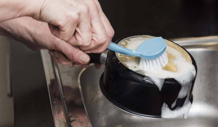Für eine gründliche Reinigung eignet sich die Kombination von Natron (oder Backpulver) und Alufolie, die mithilfe einer einfachen ionischen Reaktion das Anlaufen löst: