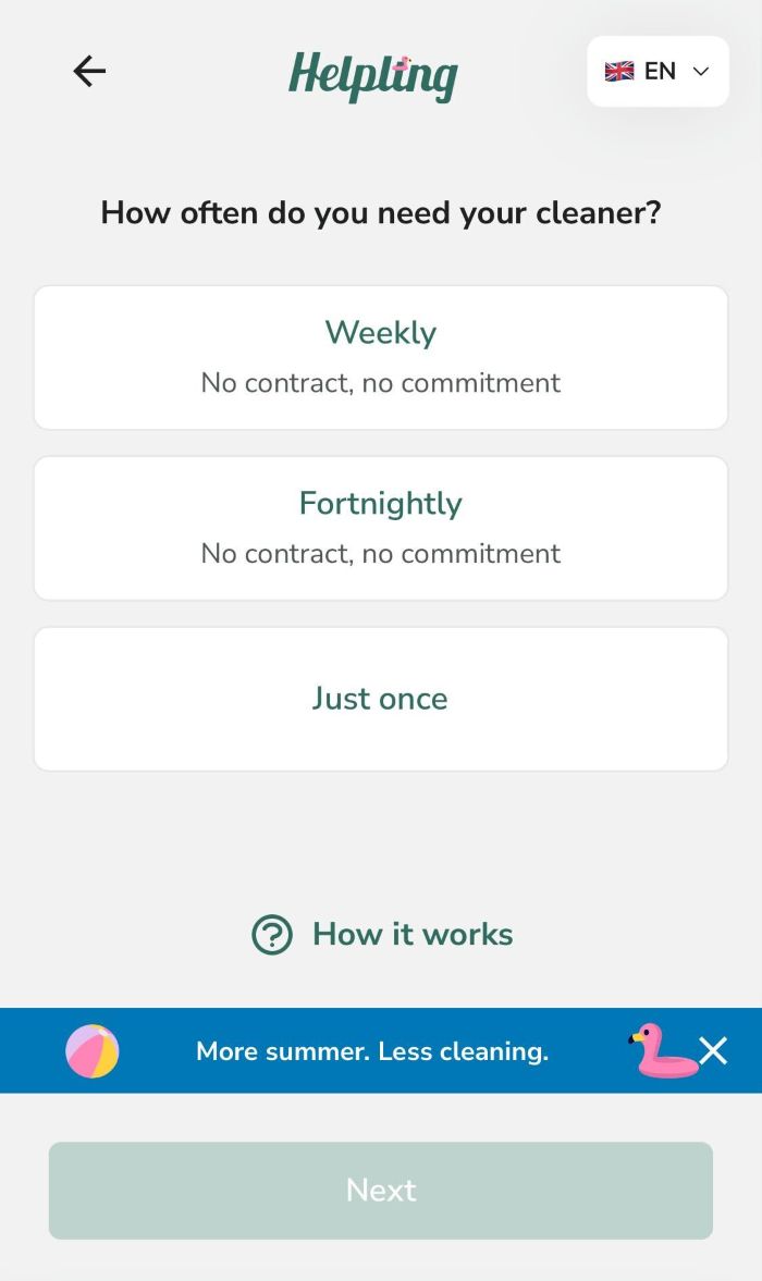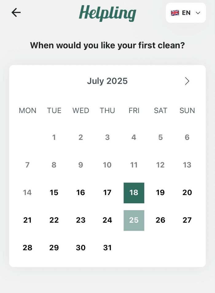 Once you have decided on a cleaner, you can proceed with the booking. The process is clearly structured.