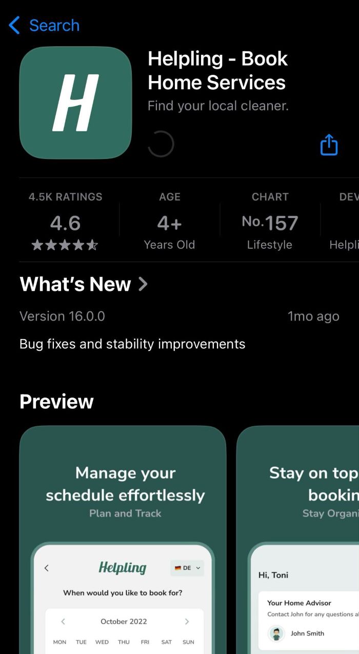 The Helpling app is your mobile control center for everything related to your cleaning. You can conveniently book appointments, manage existing orders, or contact your cleaner directly via your smartphone.